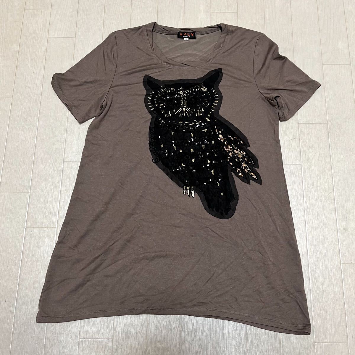 > 和851★② EVEX by KRIZIA エヴェックス クリツィア 半袖 Tシャツ フクロウ スパンコール ビジュー 40 ブラウン レディース