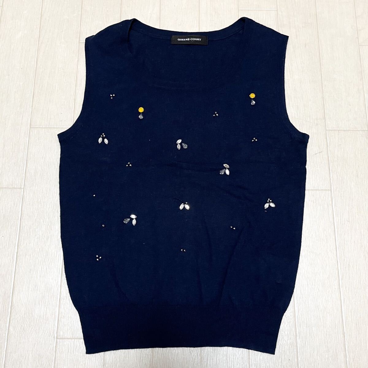 > 和851★③ QUEENS COURT クイーンズコート ノースリーブ ニット セーター ベスト ビジュー 2 ネイビー レディース