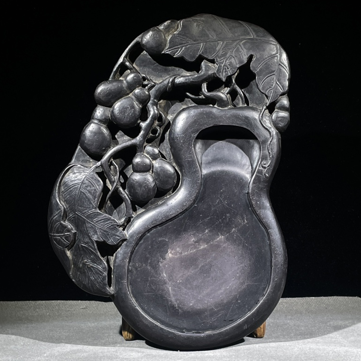 - ◆御泓軒◆『清時代 老坑端硯 福禄紋端渓硯 鄭板橋銘』極細工・古賞物・中国古玩・中国古美術