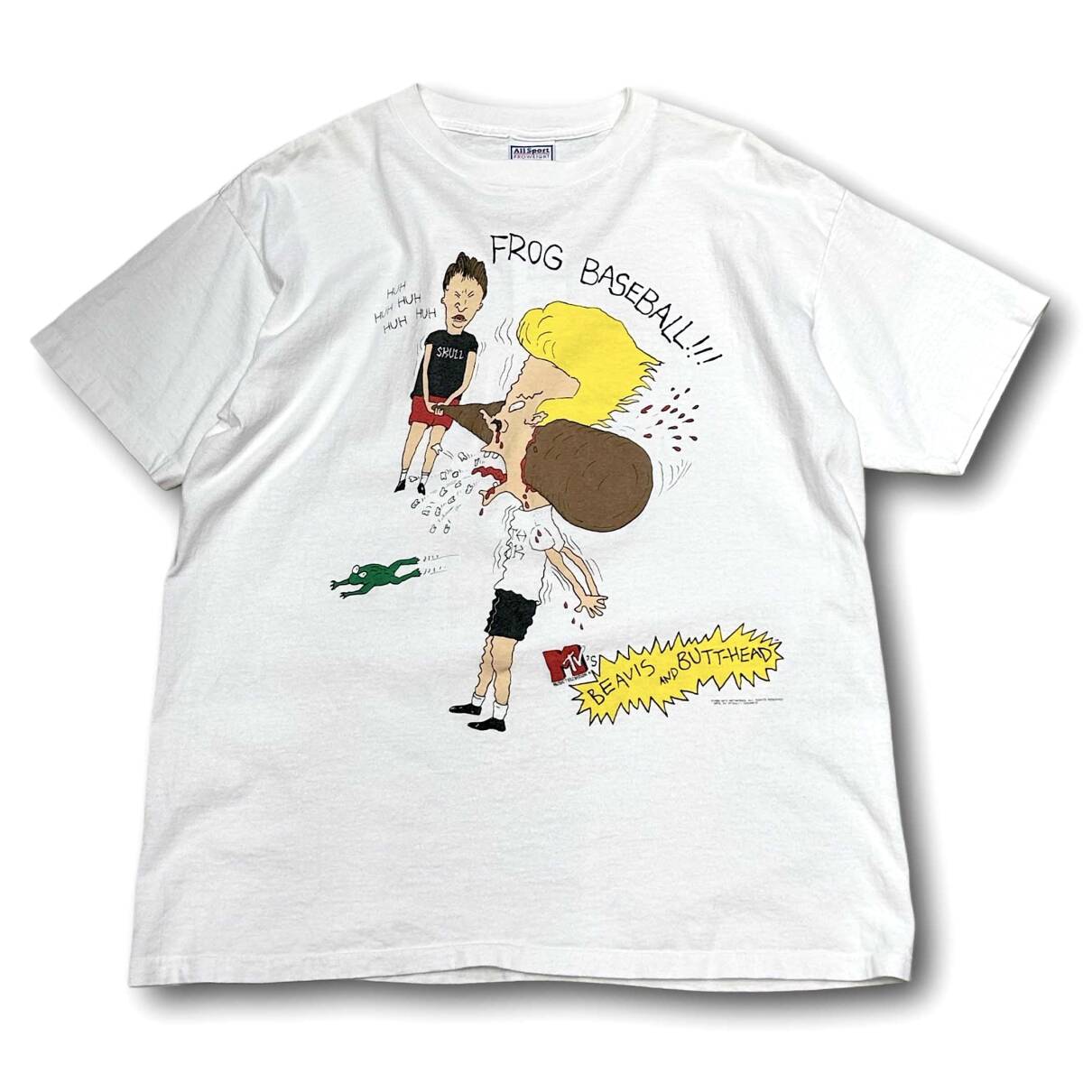 > 希少 シングルステッチ【ビンテージ 90s MTV BEAVIS&BUTTHEAD ビーバス・アンド・バットヘッド FROG BASEBALL Tシャツ】ACDC メタリカ