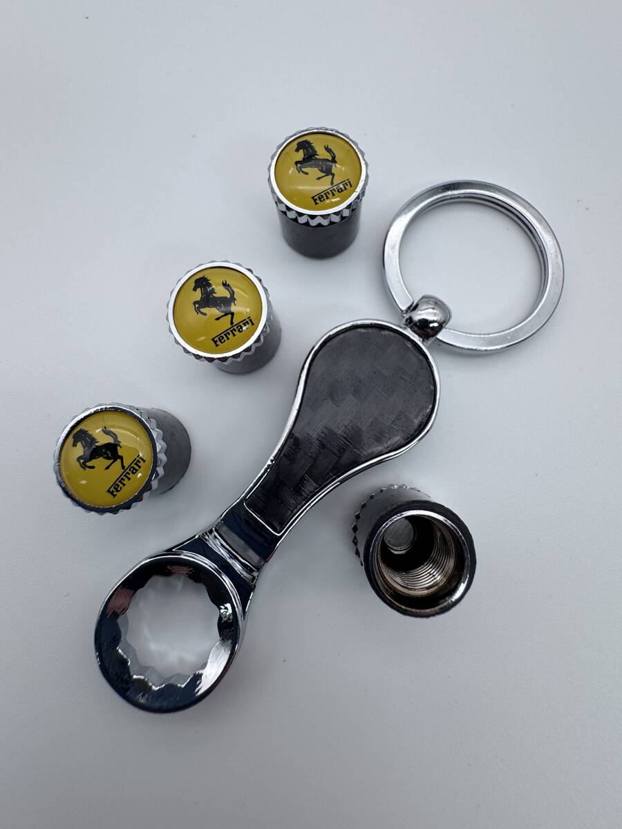 - ゆうパケット送料込 フェラーリ リアルカーボンエアバルブキャップ1台分 4個セット ロゴ付き 盗難防止バルブ二重構造
