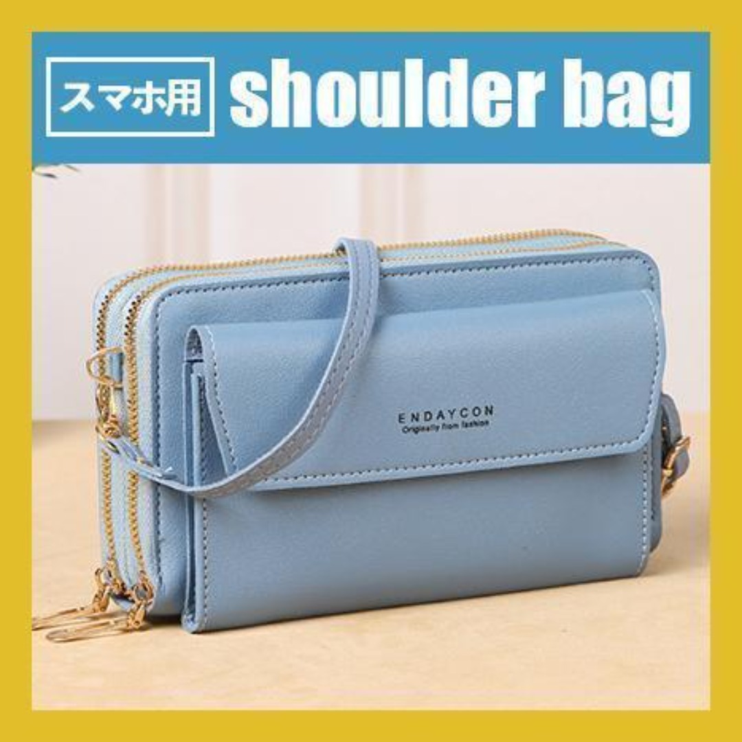 - ブルー ショルダーバッグ スマホショルダー 財布 長財布 財布一体型 大容量 カード 長財布 ミニバッグ バッグ かばん 収納