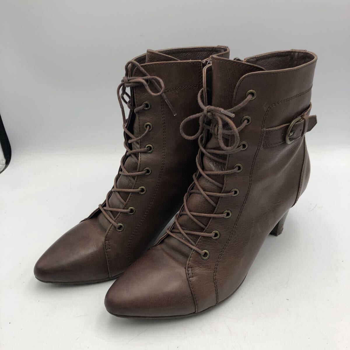 - V664 MODE KAORI モードカオリ レディース ショートブーツ 23.5cm ブラウン レザー 本革 レースアップ