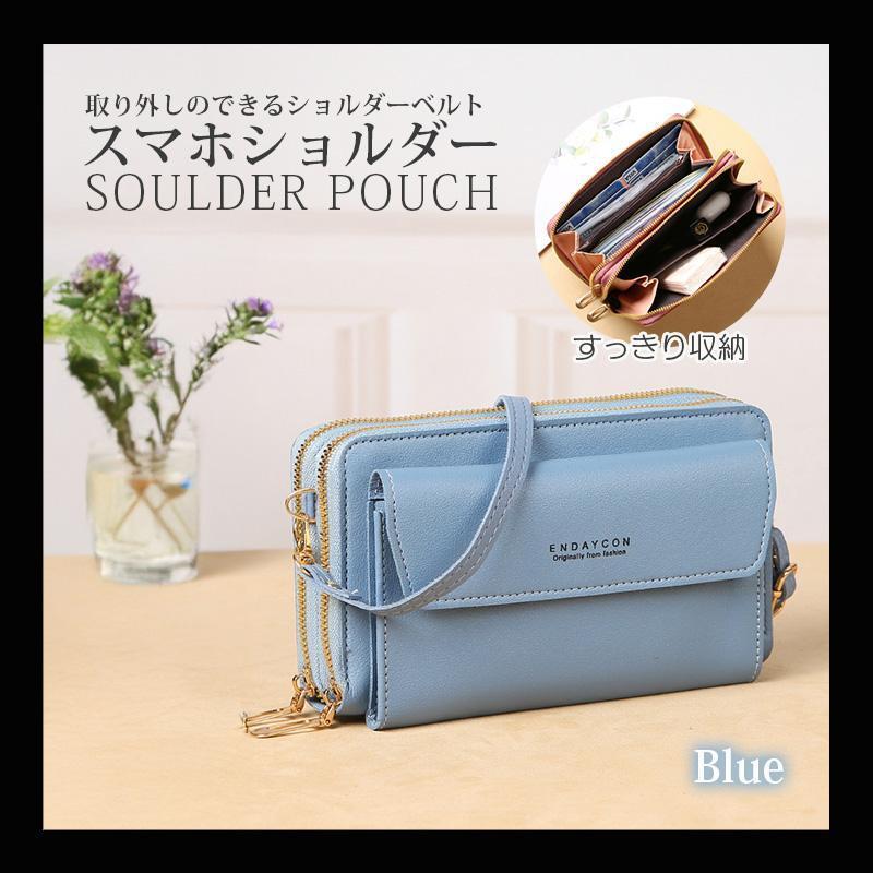 - スマホショルダー ブルー iphone ポーチ バッグ 財布 ショルダー 肩掛け
