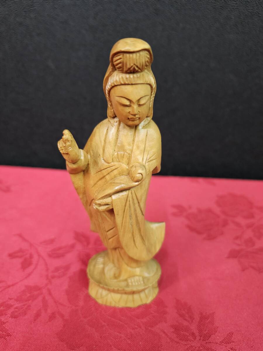 - 木製 天然木 木彫り 観音 仏像 観音像 木彫仏像 木製彫刻 サイズ約 高さ17cm 裏マジック書き込みあります ek-653p2
