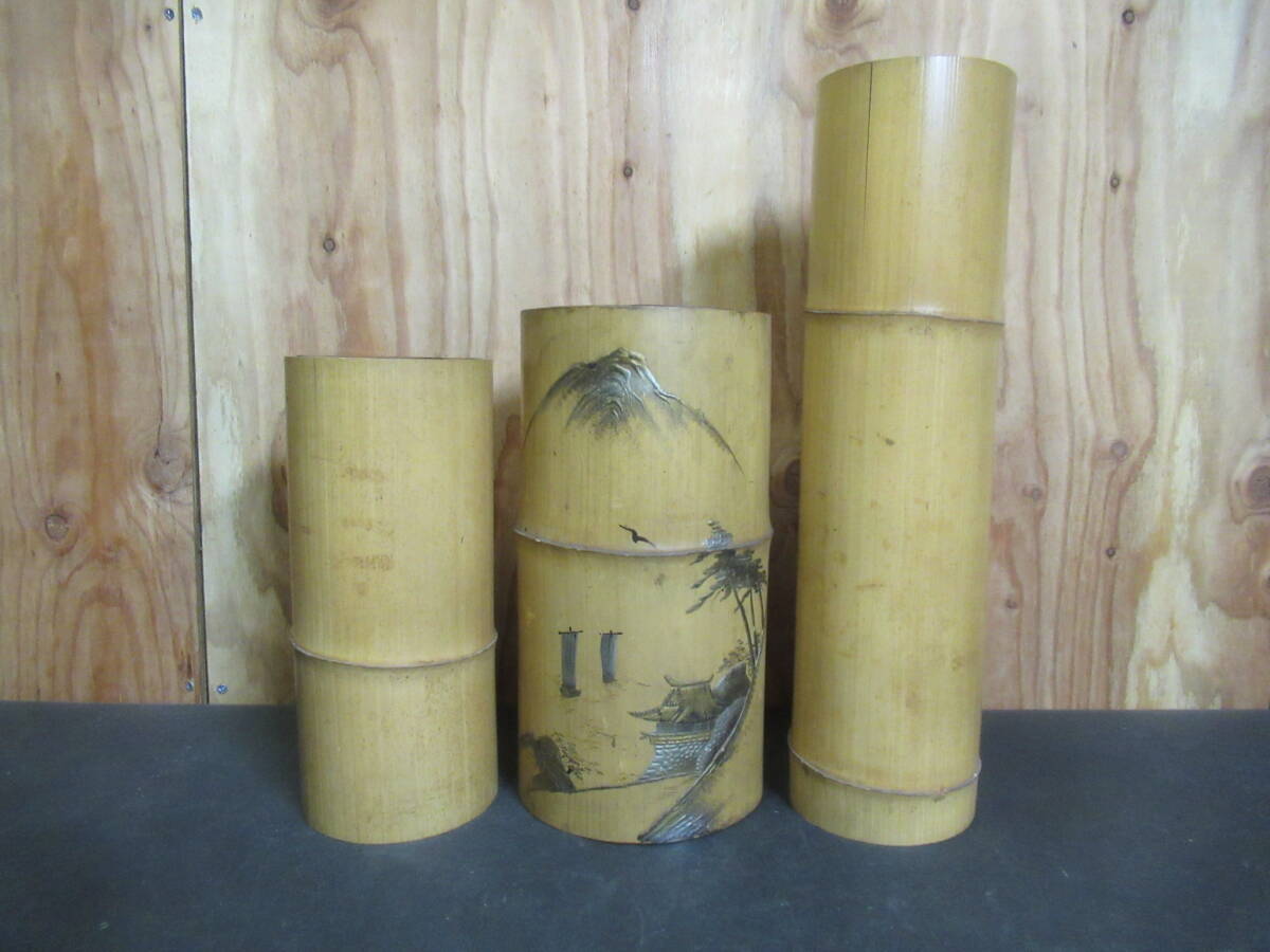 - 【広吉堂】竹 花器 時代物 3個まとめて