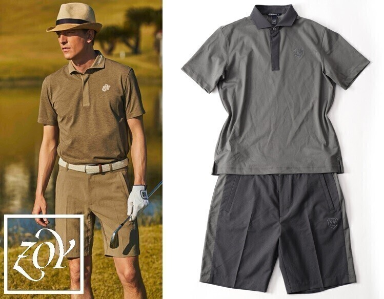 - ★正規ZOY ゾーイ★SOFTCOOLトリコットメッシュ半袖シャツ&COOLDOTSショートパンツ 上下セットアップ★チャコール灰★非売品カラー★レア
