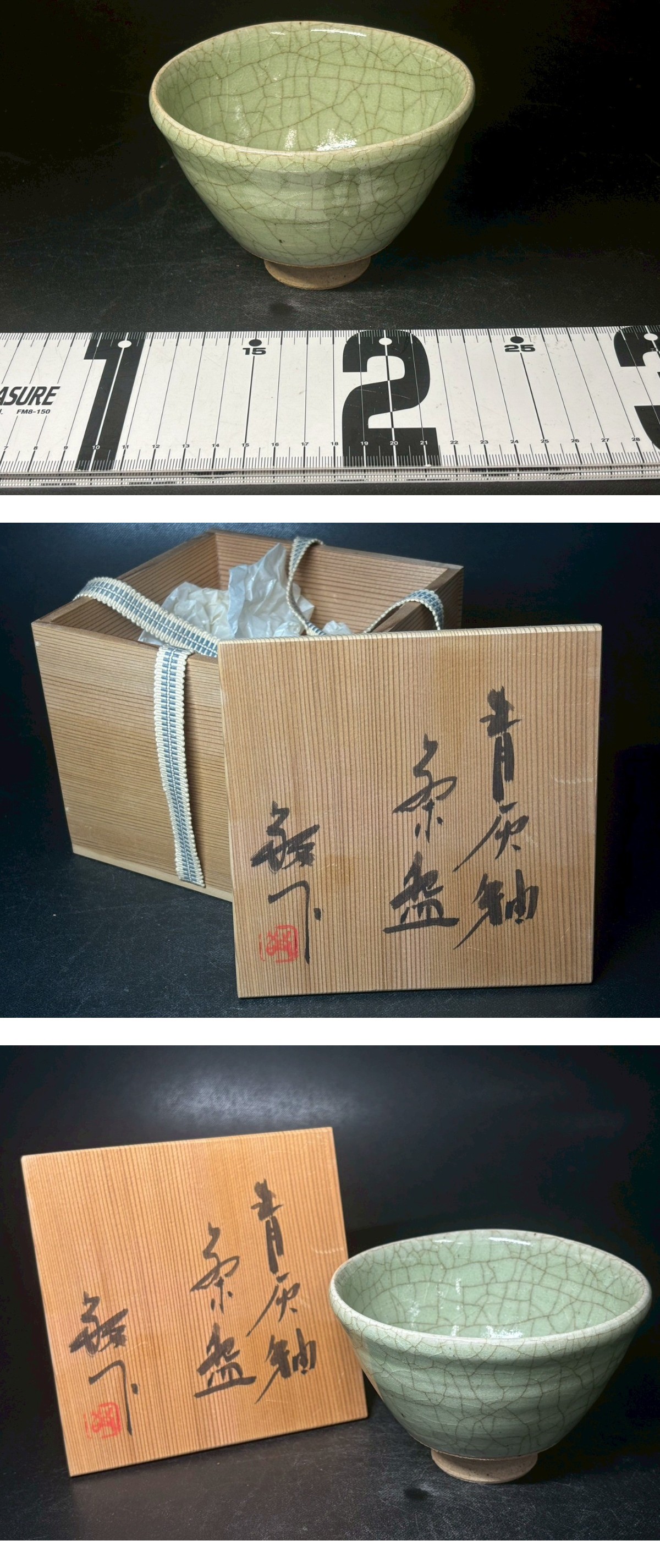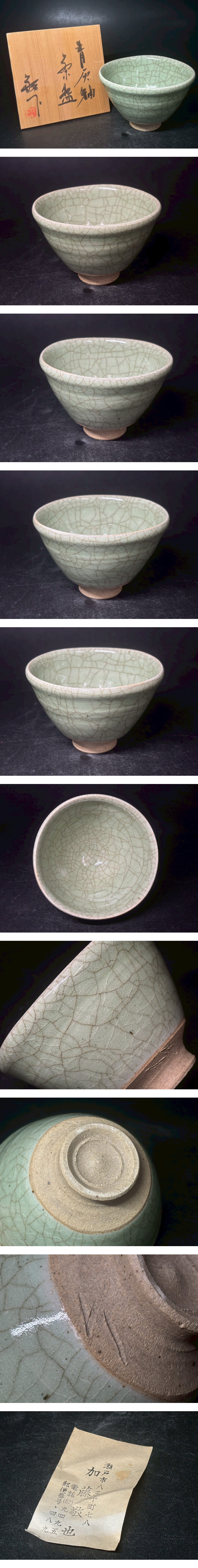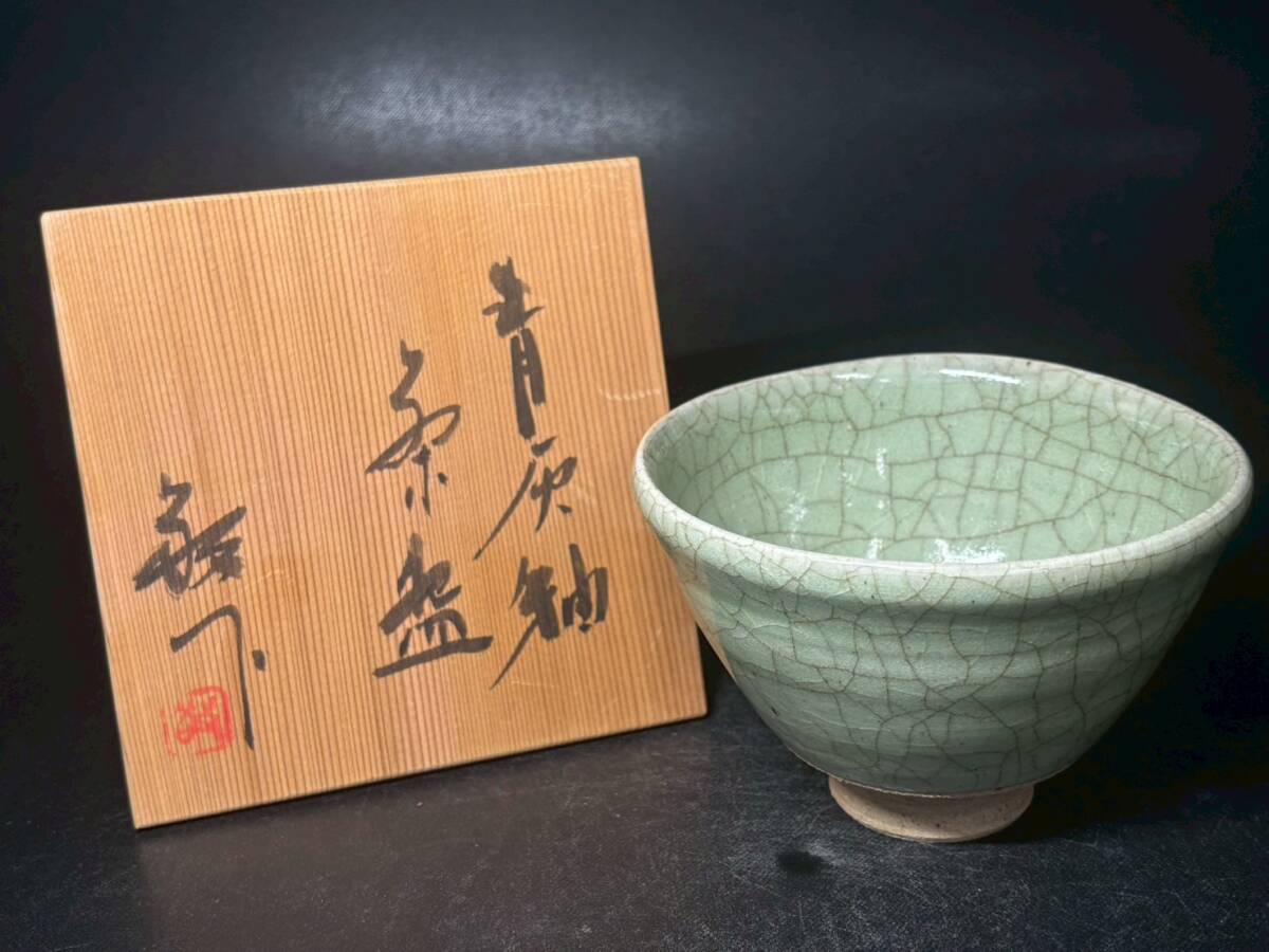 - 青灰釉 茶碗 加藤 敬也 瀬戸 茶道具 茶器 作家物 骨董 共箱 骨董 置物 飾物 日本伝統工芸品 芸術 古美術 時代物 歴史 長崎買取