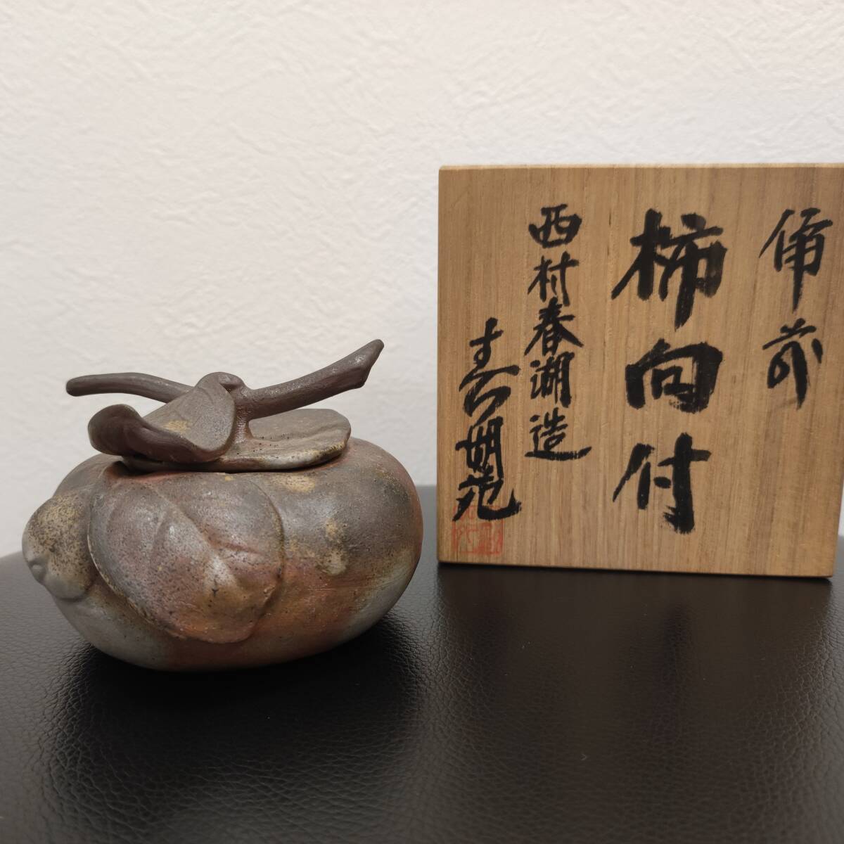 - 西村春湖造 三代目窯 備前 柿向付 春湖苑 共箱付