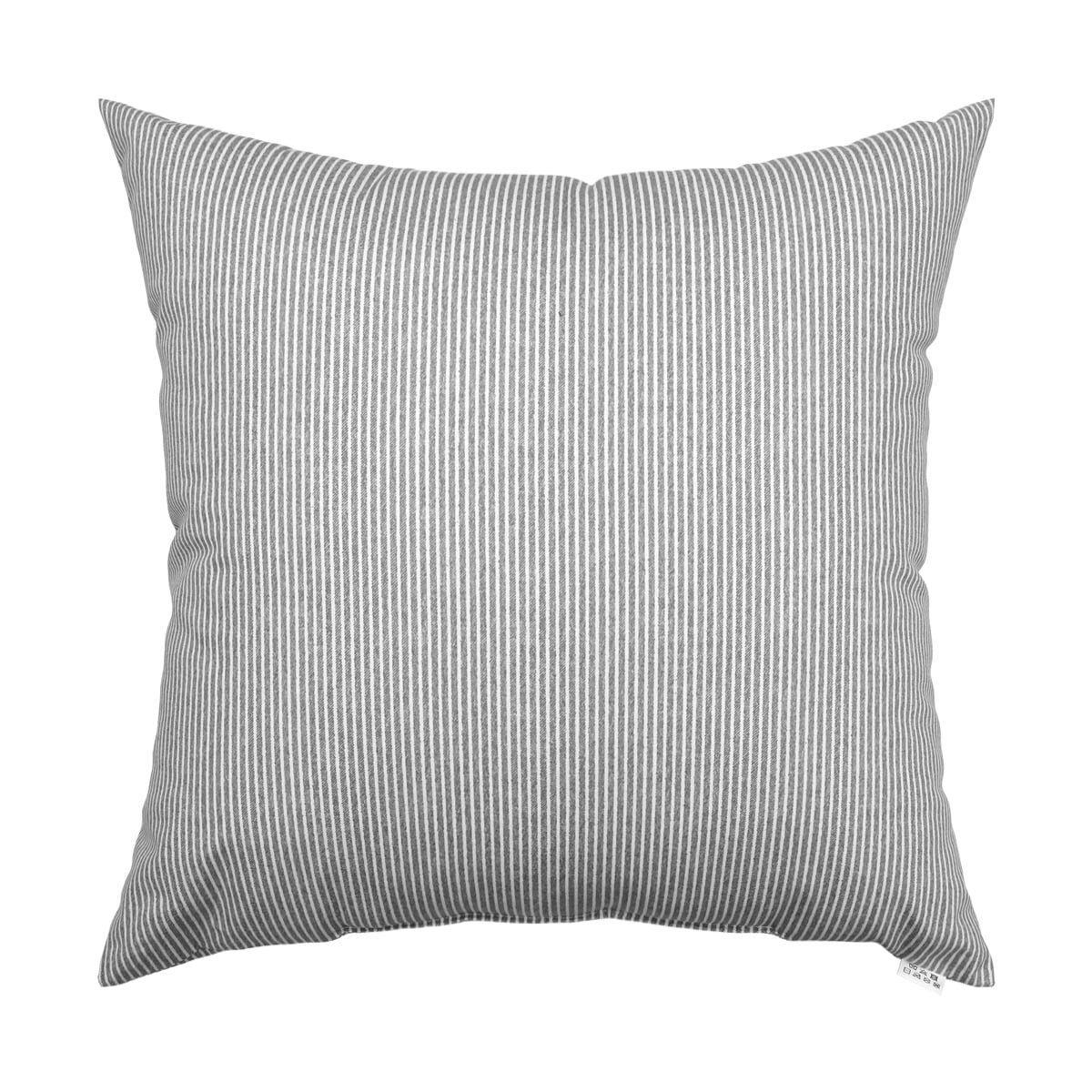 - クッション 本体 日本製 ヒッコリー デニム調 プリント グレー 60×60cm 綿100% ロギー 素縫い ポリエステルわた 縦縞 ストライプ