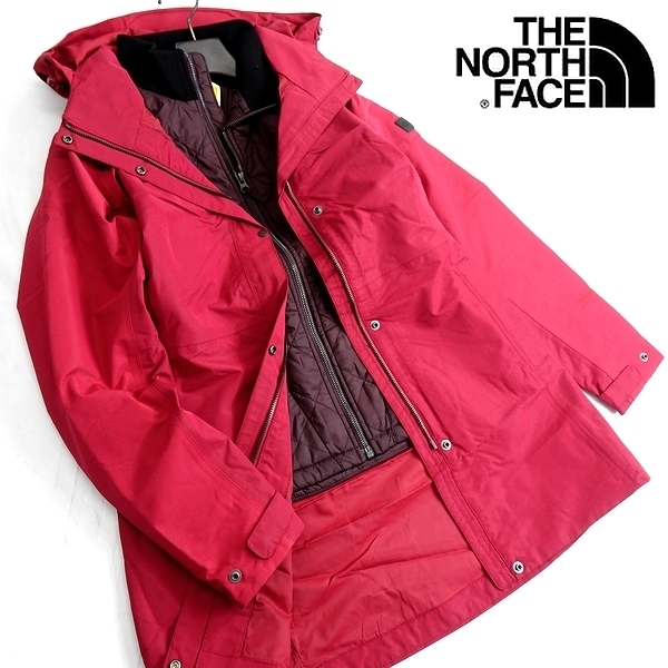 > THE NORTH FACE ノースフェイス 新品 定3.9万 耐久撥水 中綿ライナー付き ウール混 3WAY コート ジャケット YG80 RED 85/S ▲059▼kkf039nf