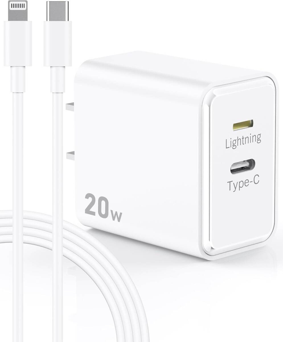 - iPhone 充電器 Type C+Lightning 一体型 【双方向可逆充電技術】20W 急速充電器 充電ケーブル2m付き