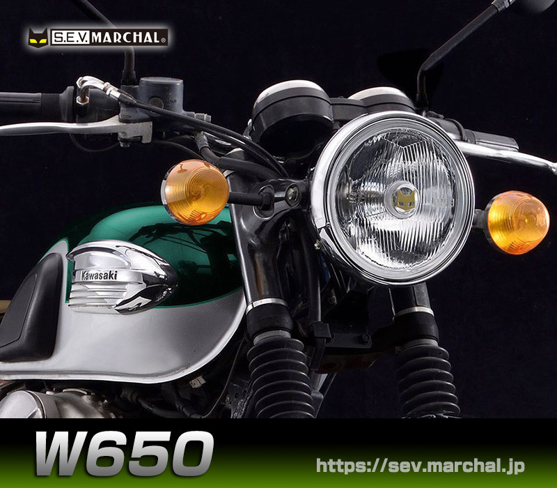 > W650 マーシャルヘッドライト722・702スタールクス クリアーレンズ ユニット 純正ライトケース・外リムで装着 8402