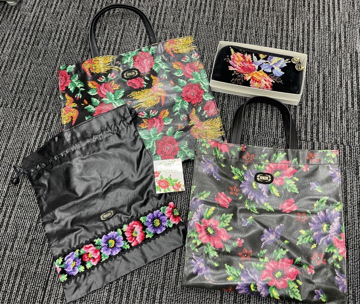 - 1円〜 FEILER フェイラー 4点まとめ トートバッグ 花柄 黒 ポーチ ハンドバッグ