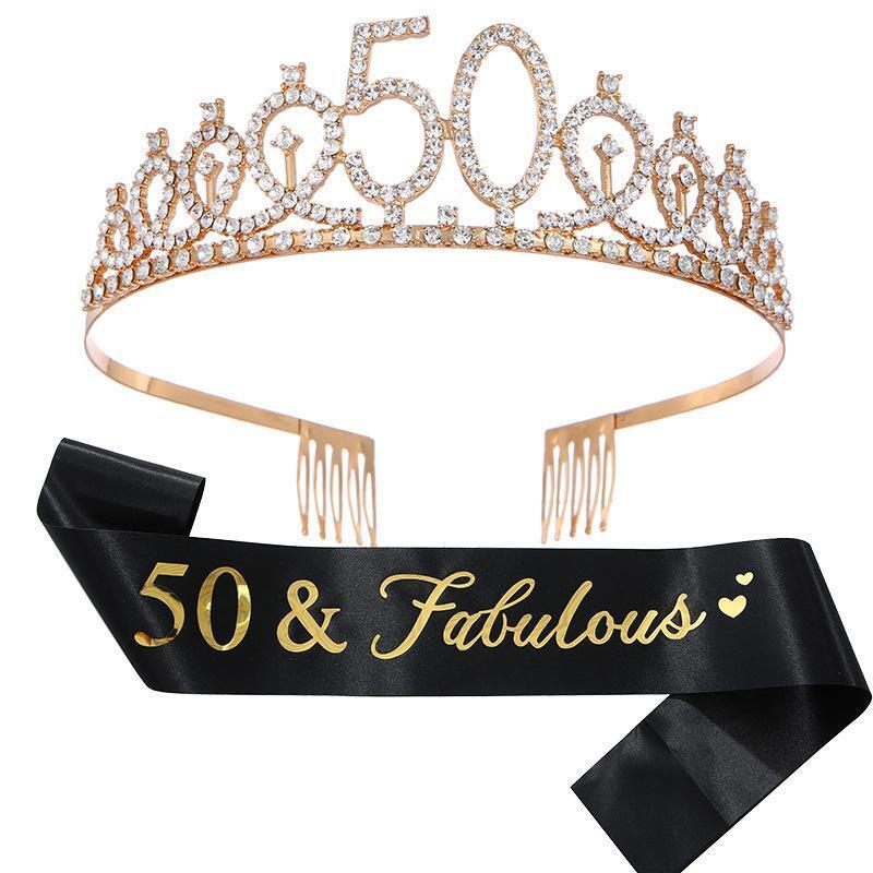 - 【新品未使用】早寿 祝い ちゃんちゃんこ 50 女性 誕生日 ティアラ たすき タスキ ブラック ゴールド パーティーグッズ