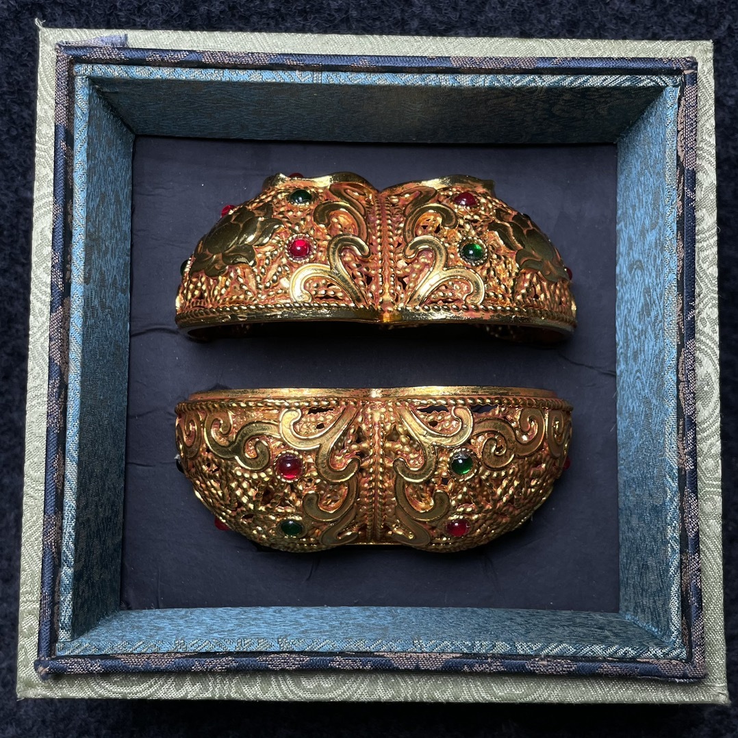 - 【超珍館蔵】 銅製細作 塗金 寶石嵌 首飾盒 盒付 古賞物 古董品 古美術品 時代物 旧家蔵出 稀少珍蔵品