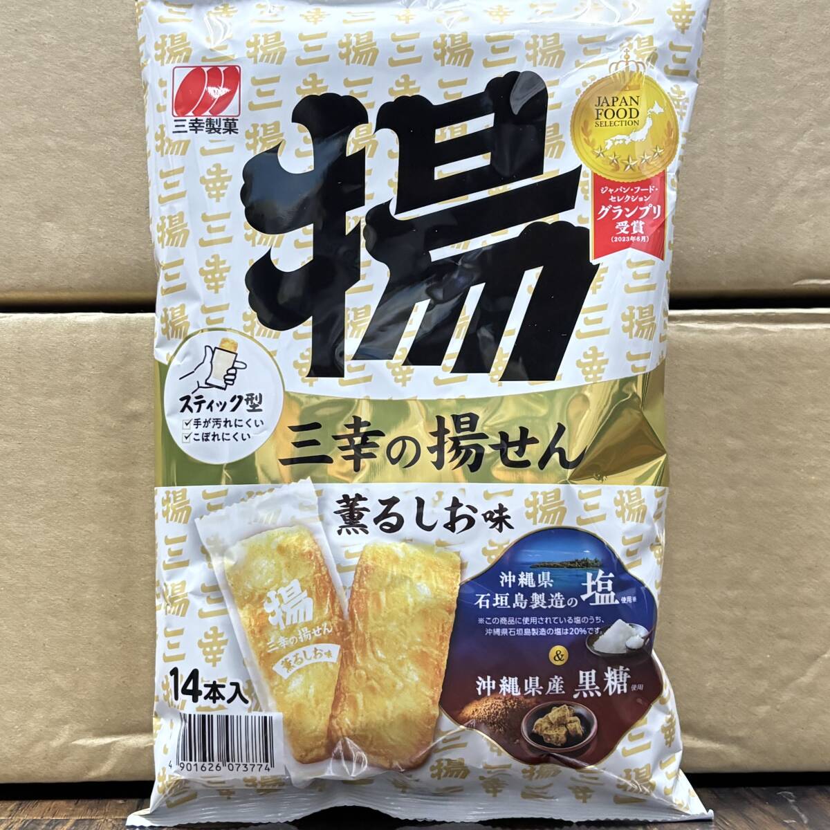 - 揚げせんべいの旨み広がる!沖縄石垣島の塩と黒糖が香り立つ三幸製菓・三幸の揚せん薫るしお味14本入×6袋-F311
