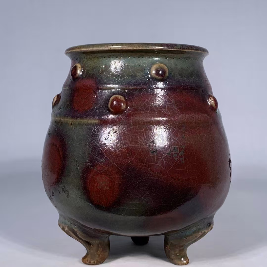 - 旧蔵 宋時代 鈞窯 乳釘 三足炉 古陶瓷 陶瓷器 古擺件 古置物 中国古玩 骨董品 時代物 稀少唐物