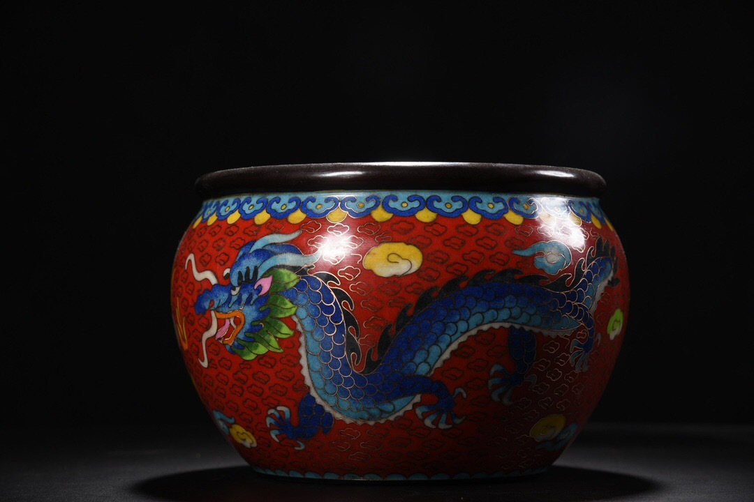 - 蔵友旧蔵出 銅製 景泰藍 琺瑯彩 龍鳳紋 聚寶缸 希少珍品 貴重品 置物 古賞物 密宗密教 供養品 仏教美術品