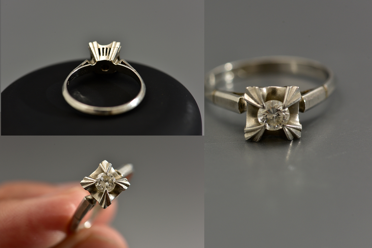 - 天然ダイヤモンド 保証品 アンティークリング プラチナ台 宝石4mm 検索:ジュエリー
