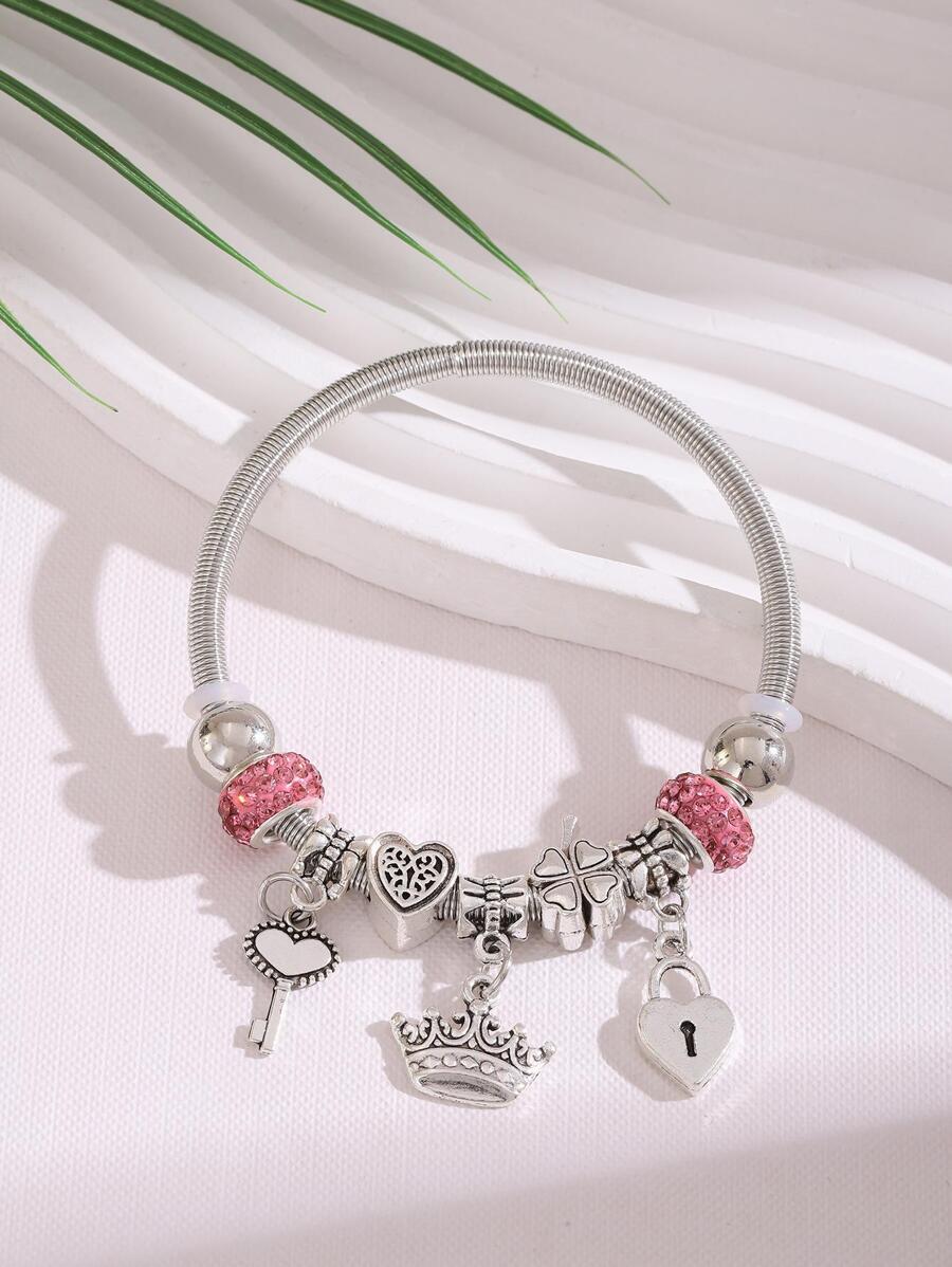 > ジュエリー レディース ブレスレット バングル 1個 ファッション ステンレス スチール ラインストーンデコ キー&ハートチャーム