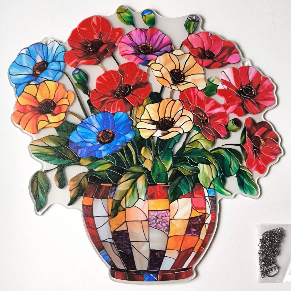 - 【カラフルな花束の花瓶飾り】アクリルプレート 飾り サンキャッチャー チェーン付き オブジェ お洒落 壁や窓辺の飾りに◎◎