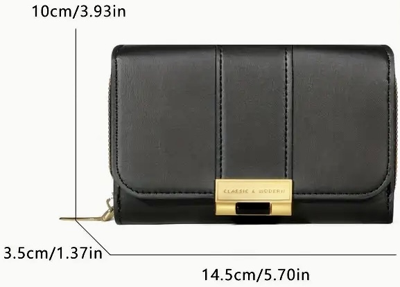 - クラシックな三つ折りお財布*ブラック 三つ折り/送180〜