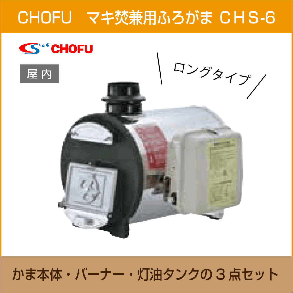 > マキ焚兼用ふろがま 焼却兼用釜 CHS-6 ロングタイプ 本体・バーナー・灯油タンク 3点セット CHOFU 長府製作所