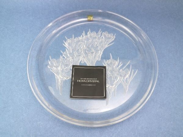 > M214■ 盛り皿 プレート HOYA クリスタル 日本製 花柄/サフラン /直径34cm、2.3kg 《 未使用品 》