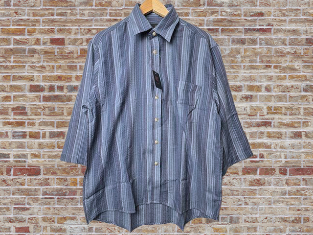 - 41182-1-a56-3 ネイビー系 LLサイズ 匠 TAKUMI 軽く涼しい しじら織り七分袖シャツ レギュラーカラーシャツ