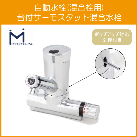 - 自動水栓 センサー水栓 混合栓用 台付サーモスタット混合栓(ポップアップ用引き棒付き) SS2VMWP ミナミサワ SuiSui MIX スイスイ
