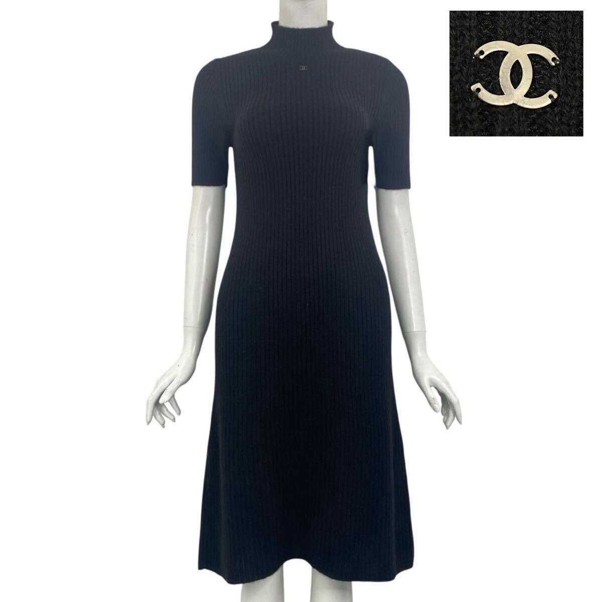 - 極美品 CHANEL シャネル 98A ワンピース 半袖 ココマーク ニット カシミヤ ブラック AH5-4 1002-4