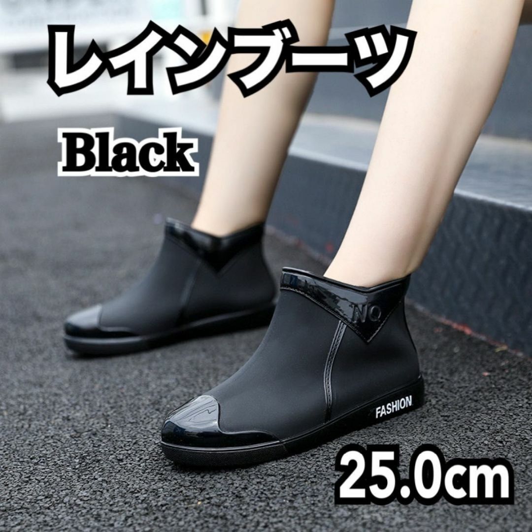 - 25.0cm レインブーツ ブラック 長靴 雨 靴 防水 レインシューズ 韓国