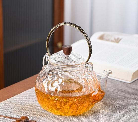 - 耐熱ガラス 900mL ティーポット やかん 茶こし付き ガラス製ポット ガラス急須 紅茶ポット フルーツティー 花茶 工芸茶 直火可