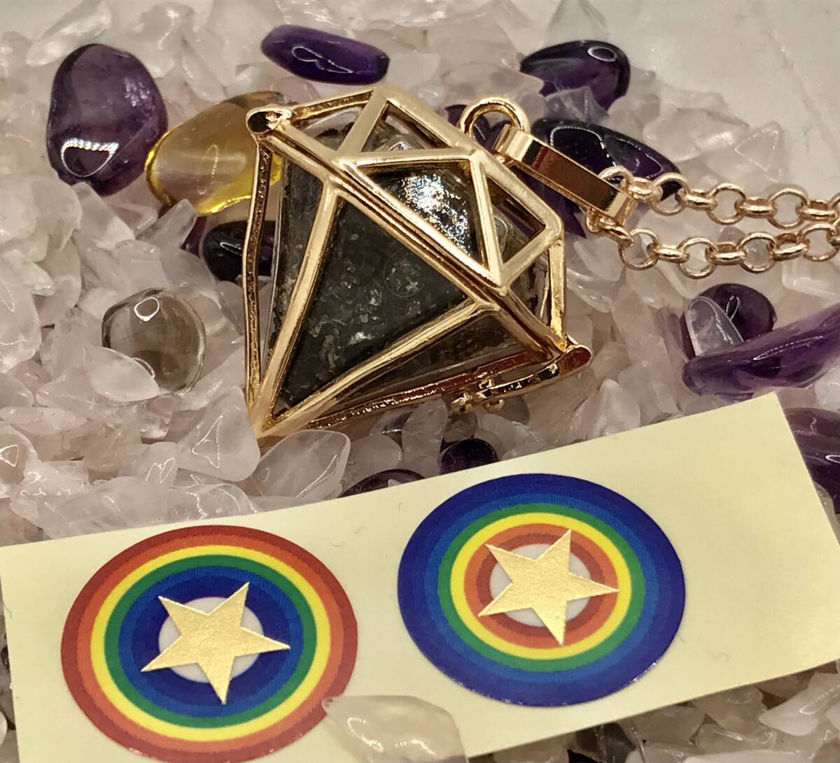 > ギベオン 隕石 隕石の粉 六芒星 ヘキサグラム ネックレス 宇宙村 宇宙パワーシール 健康守り 金運財運アップ 鉄隕石 ゴールド 金色