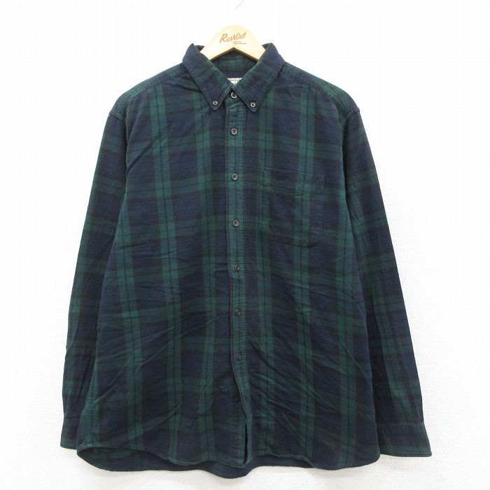 - XL/古着 エルエルビーン LLBEAN 長袖 フランネル シャツ メンズ 00s コットン ボタンダウン 緑他 グリーン タータン チェック ブラックウォ