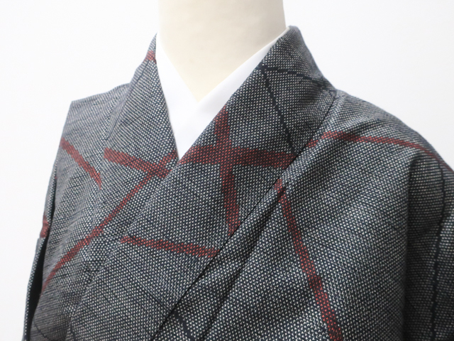 - 《京都一輝堂》【着物】紬 斜め格子文 身丈約155cm 裄丈約63cm 25z01-210