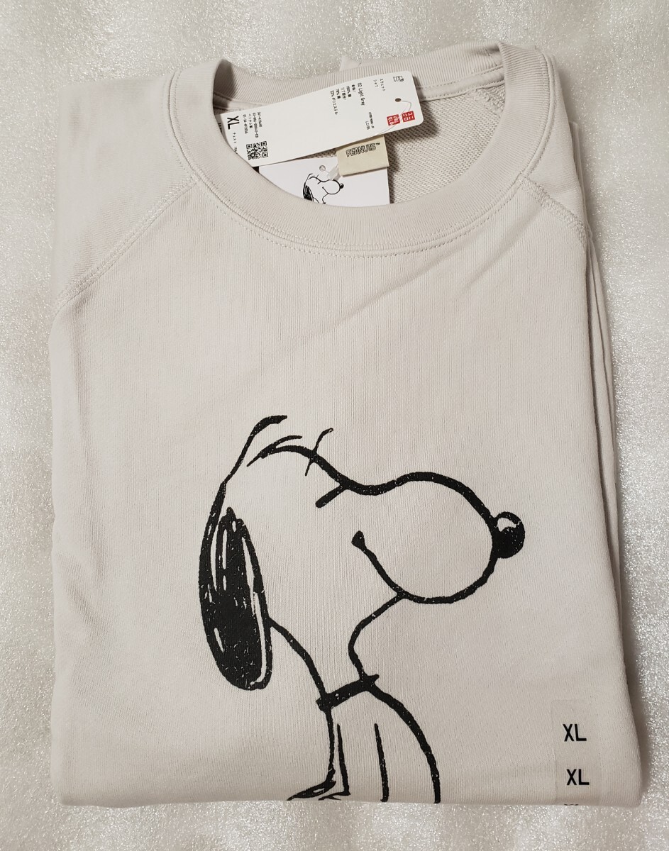 > XL 新品 ピーナッツ ユニクロ スウェットシャツ スヌーピー 長袖 薄手トレーナー PEANUTS ライトグレー 本体綿100 uniqlo 男女兼 送料無料