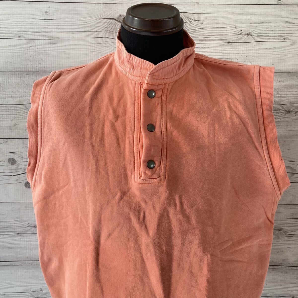 - チャムス ノースリーブスウェット ボタン付きハイネック オレンジ 3341 トップス