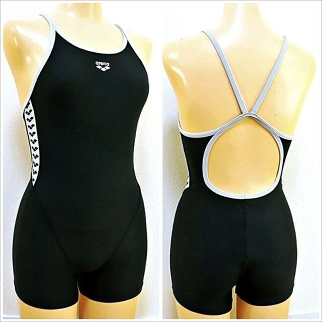 - PE3-Y84☆//arenaアリーナ競泳水着*グレーパイピング*サイドロゴたっぷり*ショートスパッツ※一番安価な送料はゆうパケットなら250円