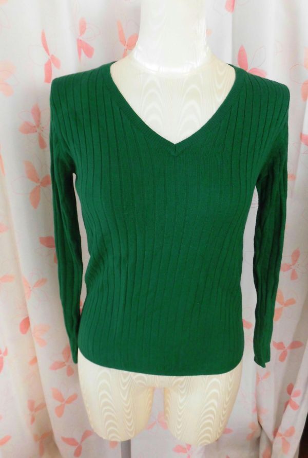 - 915 Avan LilyV襟のグリーンのセーター サイズF