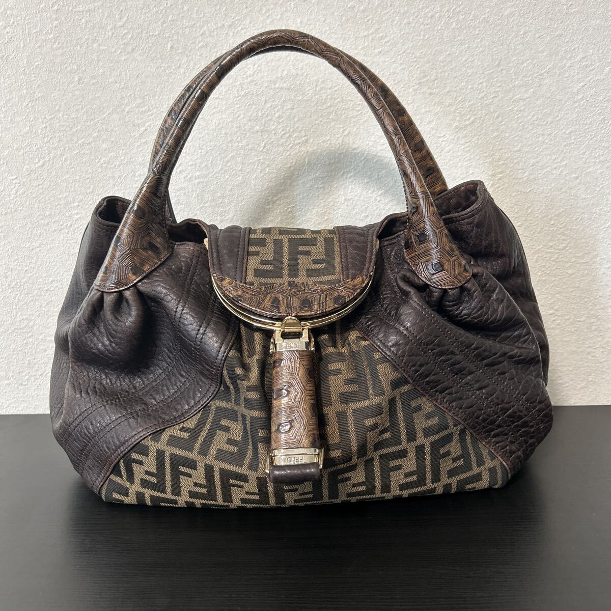 - FENDI フェンディ スパイ ハンドバッグ ズッカ レザー