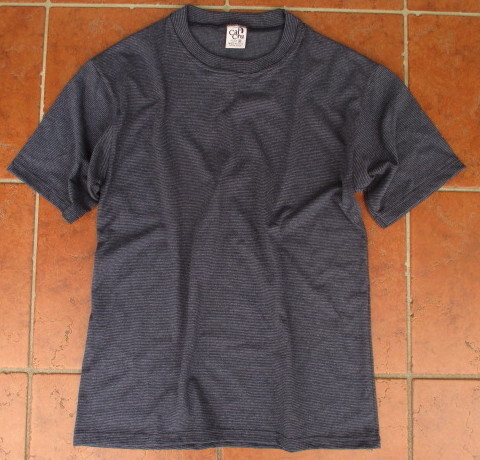 > SALE!アメリカ製!1968年カリフォルニアで誕生!CALCRU(USA)5,5オンス・マイクロストライプ・Tシャツ(ネイビー:Mサイズ)