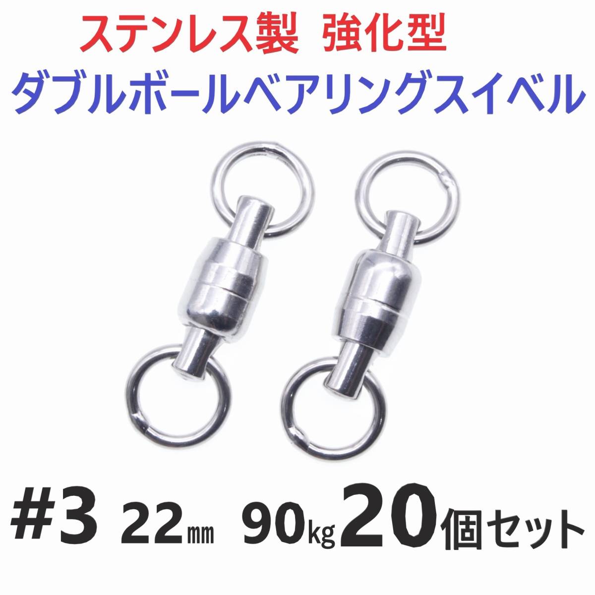 > 【送料無料】強化型 ステンレス製 ダブルボールベアリングスイベル #3 22㎜ 90㎏ 20個セット 溶接リング 両軸回転 ジギングに!