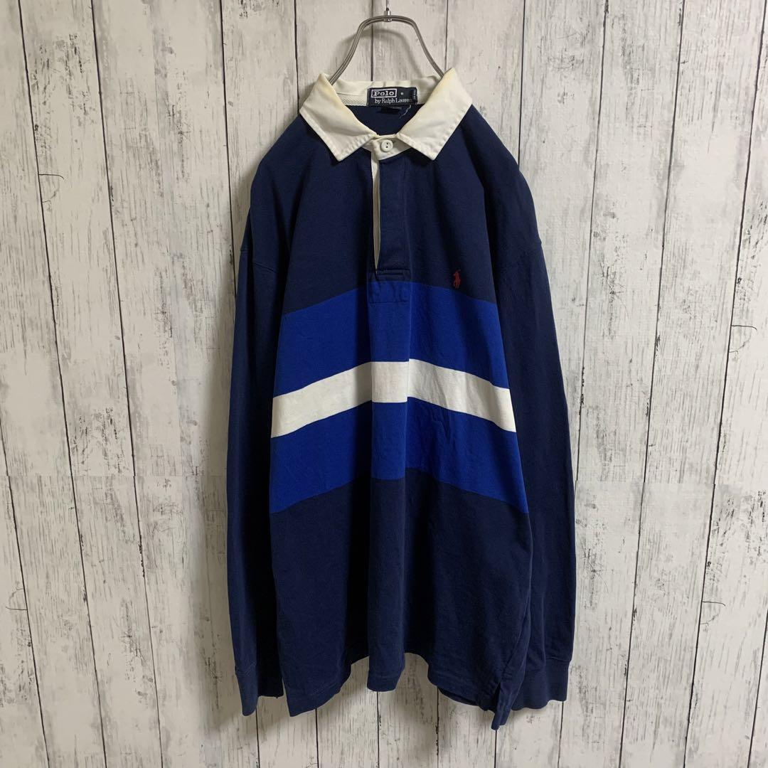 - RALPH LAUREN ラルフローレン ラガーシャツ ラグビーシャツ ポロシャツ 刺繍 ボーダー 紺青白 ネイビー ブルー ホワイト