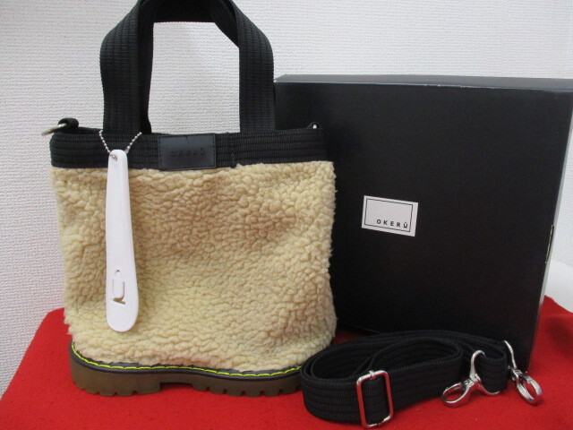 - 【11654】★OKER オーケル★ボア×ラバー 2WAY ショルダーバッグ・ハンドバッグ (箱付き) 斜め掛けOK