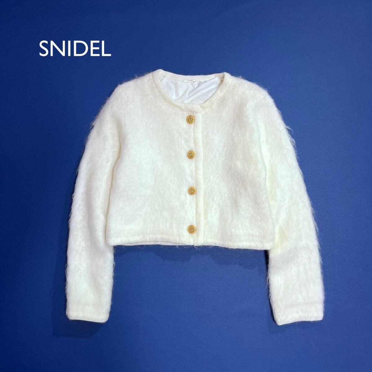 - ci121 SNIDEL モヘヤニットジャケット 金ボタン ノーカラージャケット ふわふわ 秋冬 スナイデル