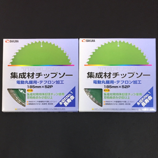 > バクマ BAKUMA 集成材チップソー 電動丸鋸用・テフロン加工 185mm×52P 刃厚1.6mm 紙ケース付き 計2点 セット