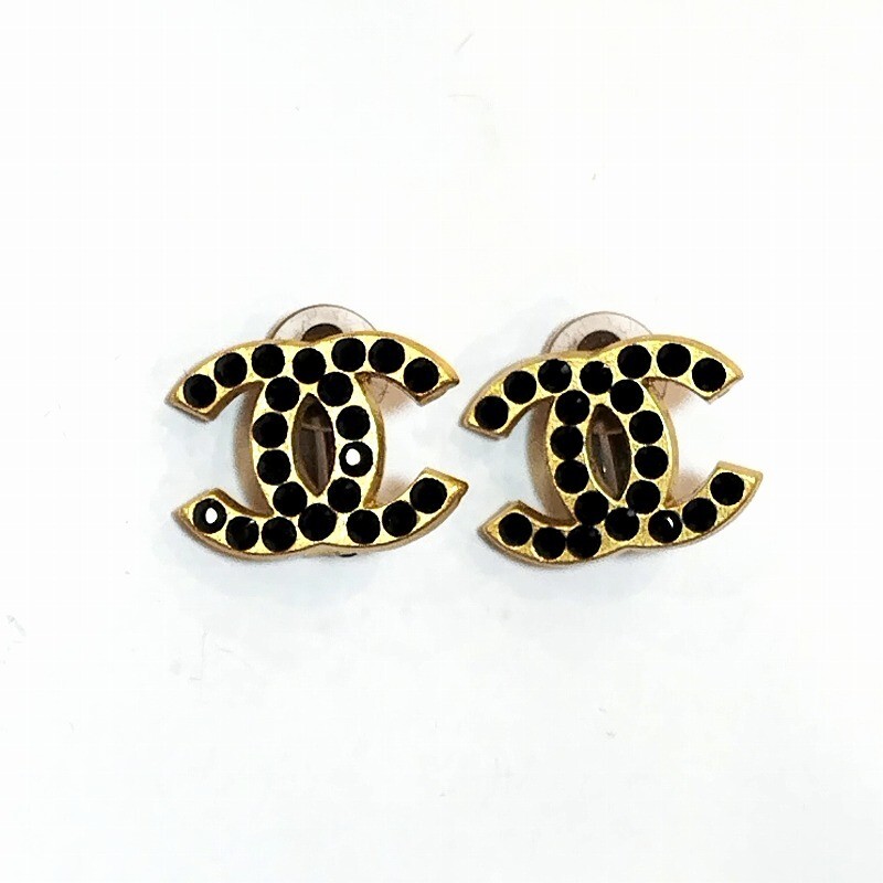 > シャネル(CHANEL) ヴィンテージ GP ココマーク ブラックラインストーン イヤリング 01A 【中古】 JA-24727