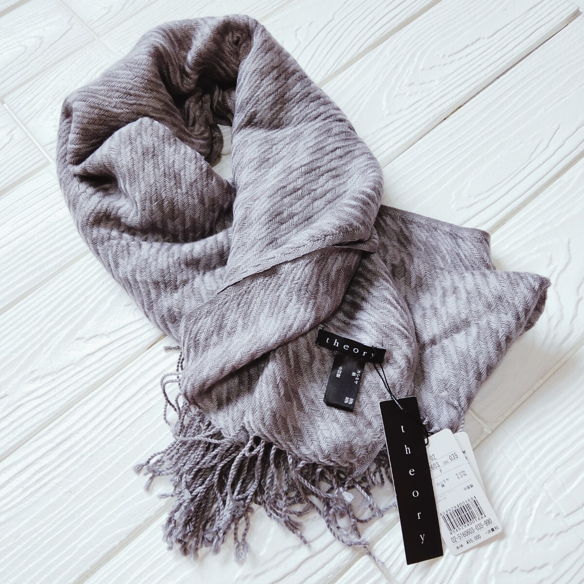 > 未使用*theory*カシミヤ*シルク*ストール*ショール*マフラー*絹*セオリー*ユニセックス*ヘリンボーン*大判*男女兼用*グレー系*定価1.6万